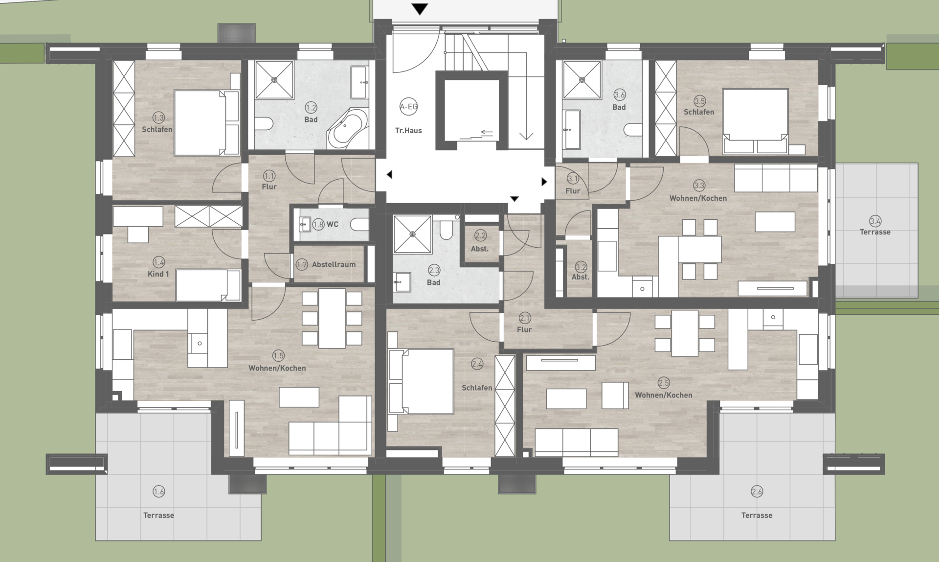 - Erdgeschosswohnungen mit eigenem Gartenanteil